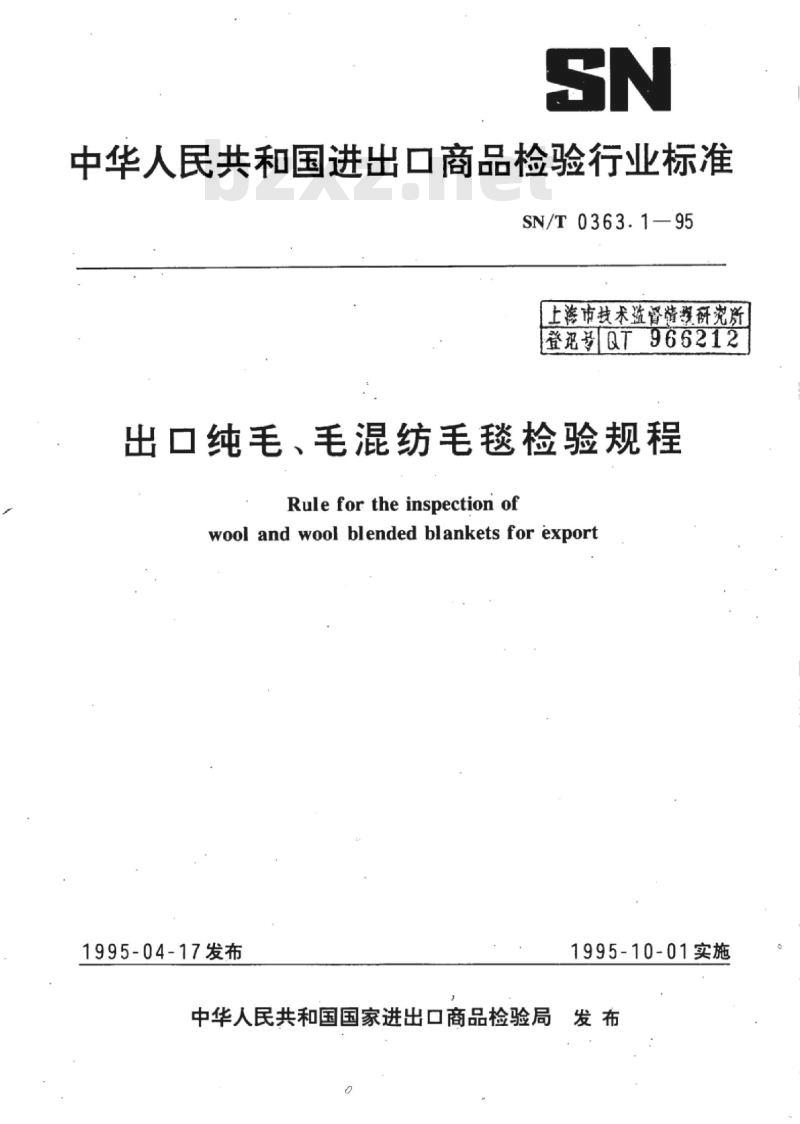 SN/T 0363.1-95.Rule for the inspection of wool and wool bl ended blankets for export.