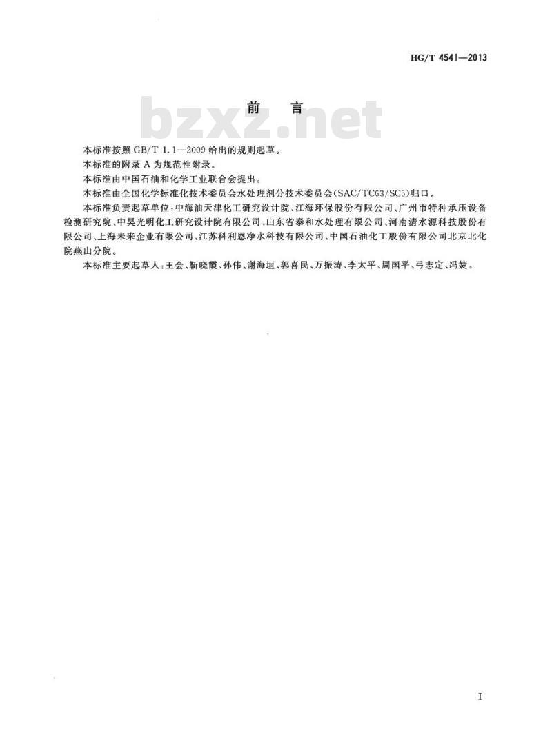 本标准由全国化学标准化技术委员会水处理剂分技术委员会(SAC/TC63/SC5)归口。本标准负责起草单位:中海油天津化工研究设计院、江海环保股份有限公司、广州市特种承压设备检测研究院、中昊光明化工研究设计院有限公司、山东省泰和水处理有限公司、河南清水源科技股份有限公司、上海未来企业有限公司、江苏科利恩净水科技有限公司、中国石油化工股份有限公司北京北化院燕山分院。