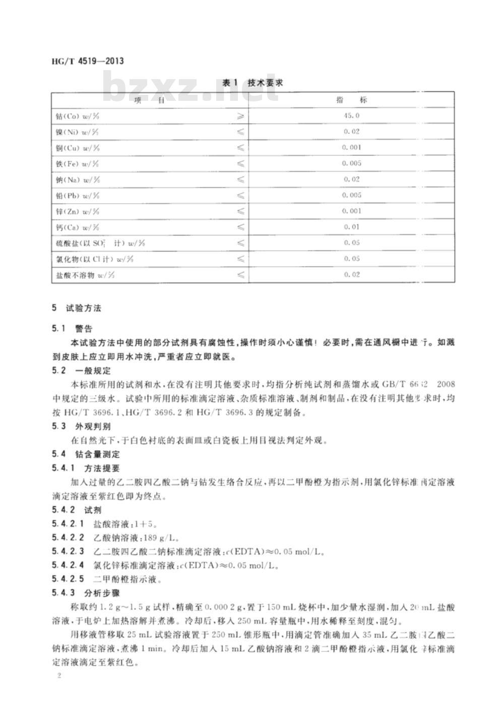 4.2碱式碳酸钻按本标准的试验方法检测应符合表1的技术要求。第1部分:标准滴定
