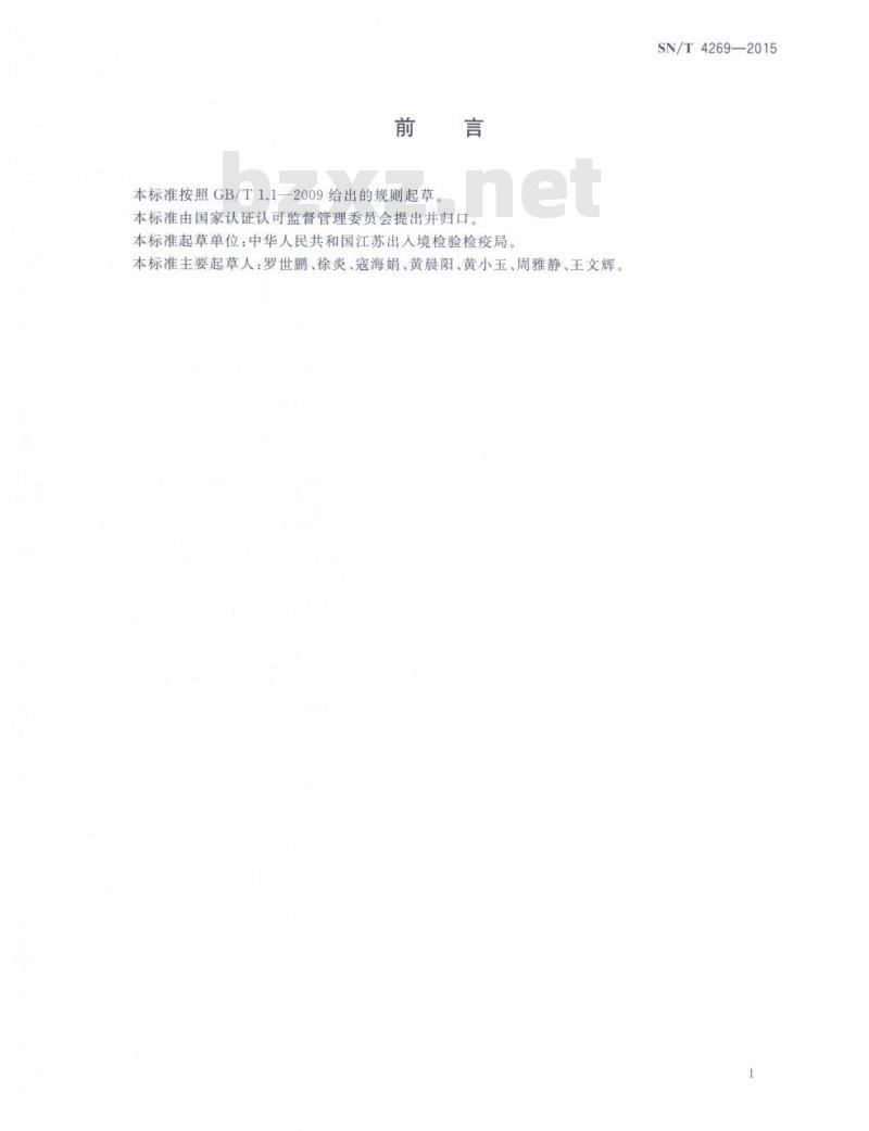 本标准按照GB/T1.1一2009给出的规则起草本标准由国家认证认可监督管理委员会提出并归口本标准起草单位:中华人民共和国江苏出入境检验检疫局。本标准主要起草人:罗世鹏、徐炎、寇海娟、黄晨阳、黄小玉、周雅静、王文辉。SN/T4269—2015