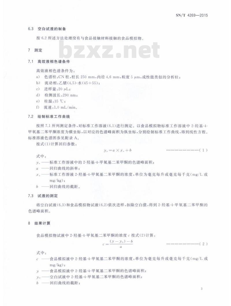 【SN商检标准】 食品接触材料高分子材料食品模拟物中2-羟基-4-甲氧基二苯甲酮的测定高效液相色谱法