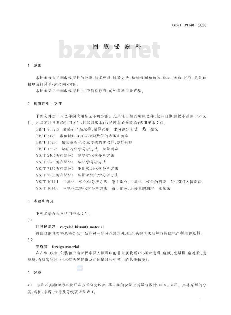 - GB/T 39148-2020 回收铋原料