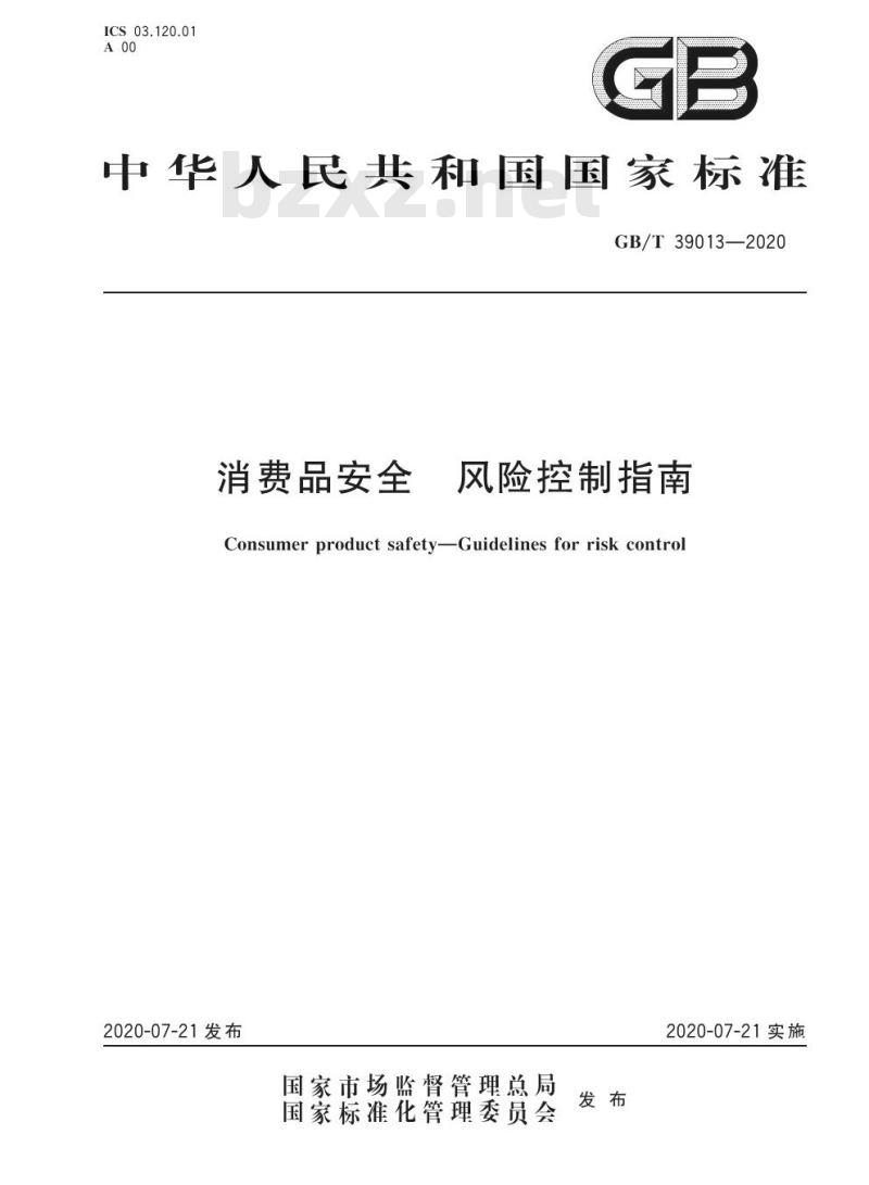 - GB/T 39013-2020 消费品安全 风险控制指南