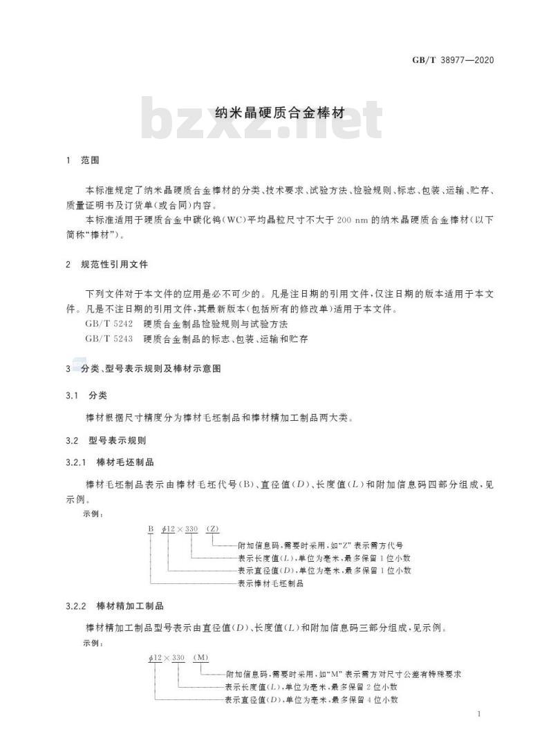 - GB/T 38977-2020 纳米晶硬质合金棒材