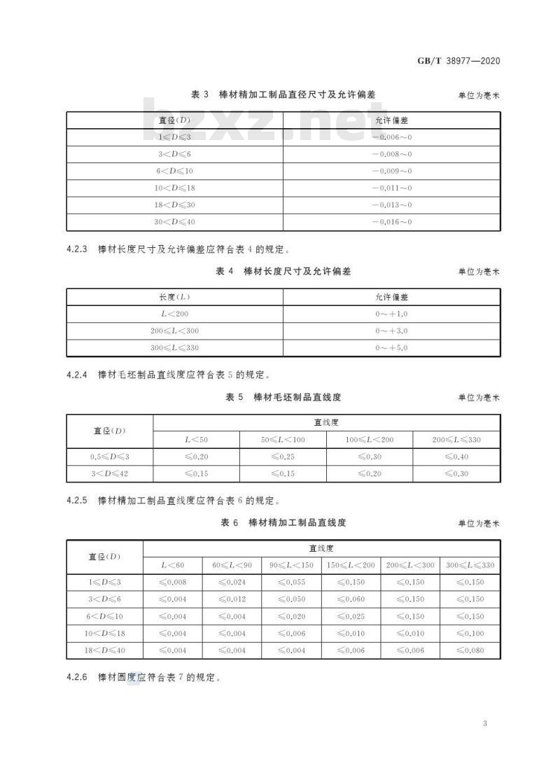 5.1棒材的化学成分分析按供需双方协商确定的方法进行5.2棒材的尺寸及允许偏差、形状公差用相应精度的量具检测。GB/T38977—2020