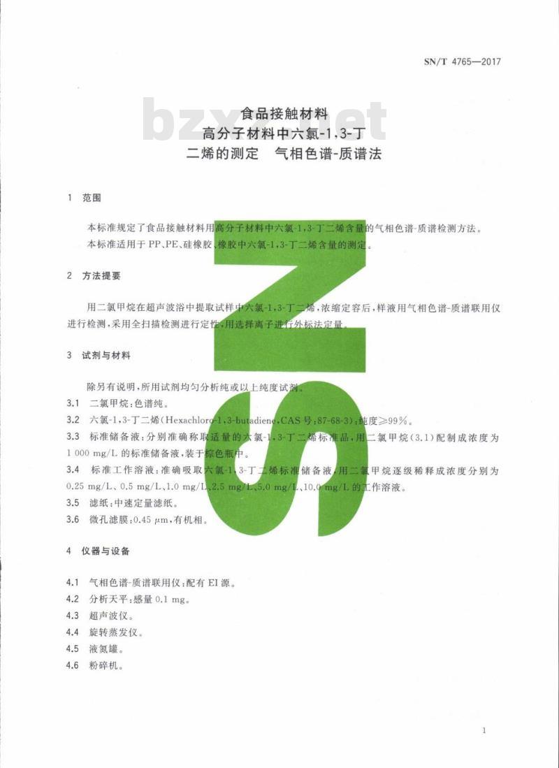 - SN/T 4765-2017 食品接触材料高分子材料中六氯-1,3-丁二烯的测定气相色谱-质谱法