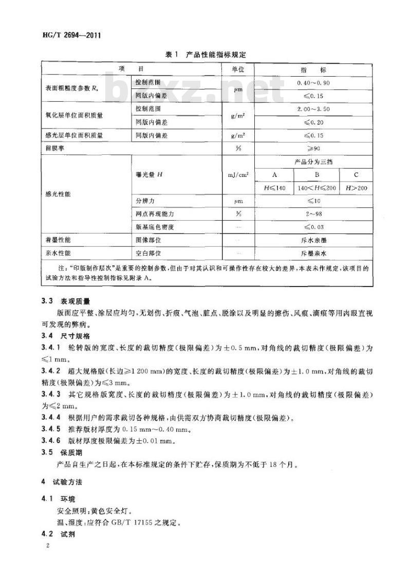 HG/T 2694适用于经粗化和阳极氧化处理过的铝板基为支持体的阳图型PS版,适用于接触曝光的真空晒版机、连晒机和自动显影机及手工冲洗加工工艺。