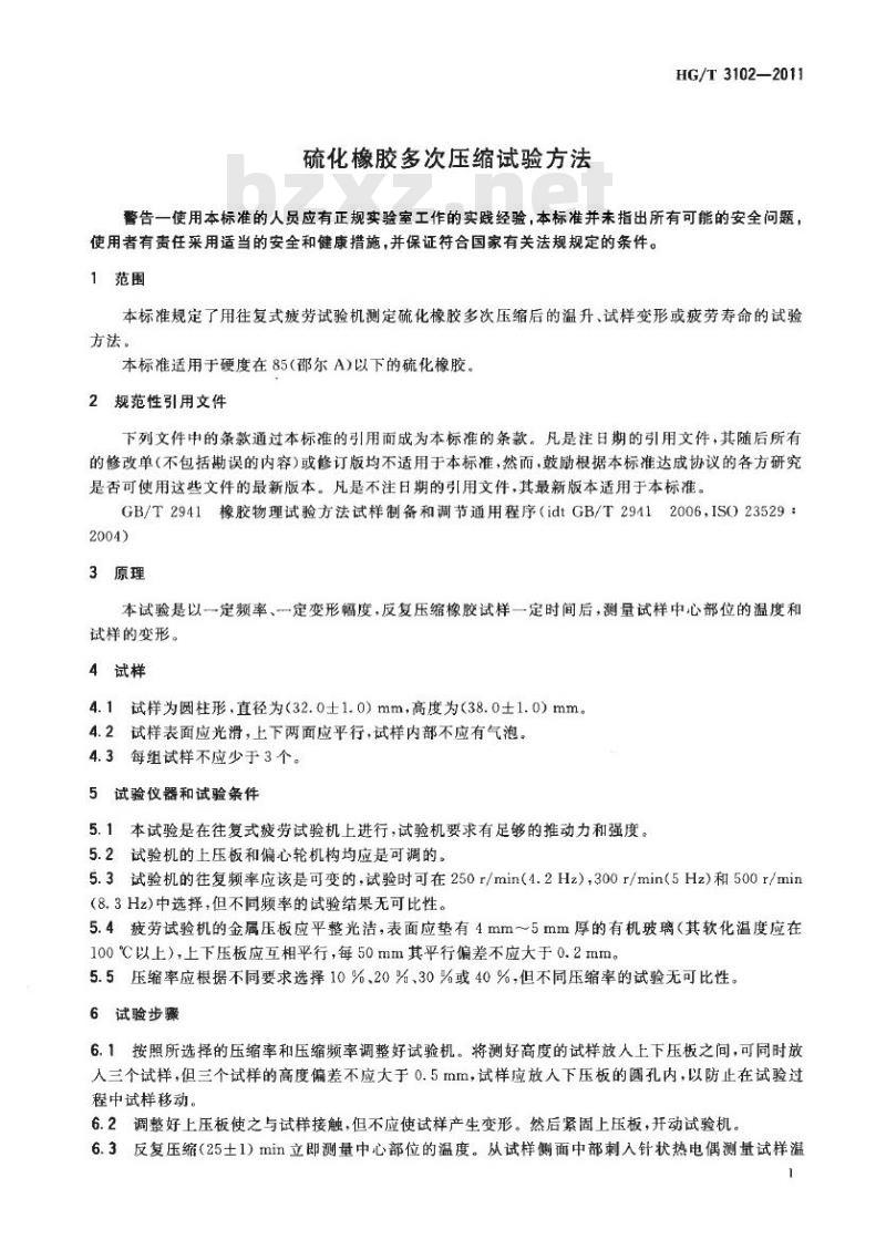 - HG/T 3102-2011 代替 HG/T 3102-1985 硫化橡胶多次压缩试验方法