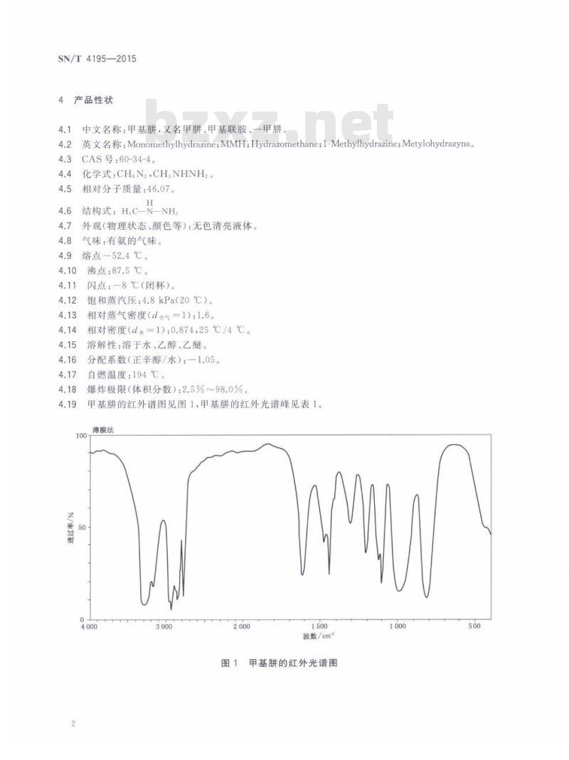 SN/T 4195规定了进出口甲基肼及其包装的要求、检验和合格判定与处置。
