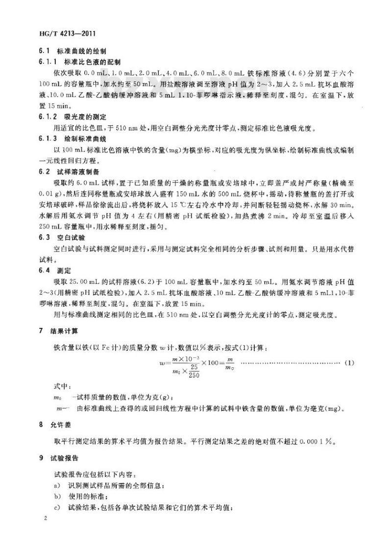 - HG/T 4213-2011 工业用三氯氧磷铁含量的测定 分光光度法