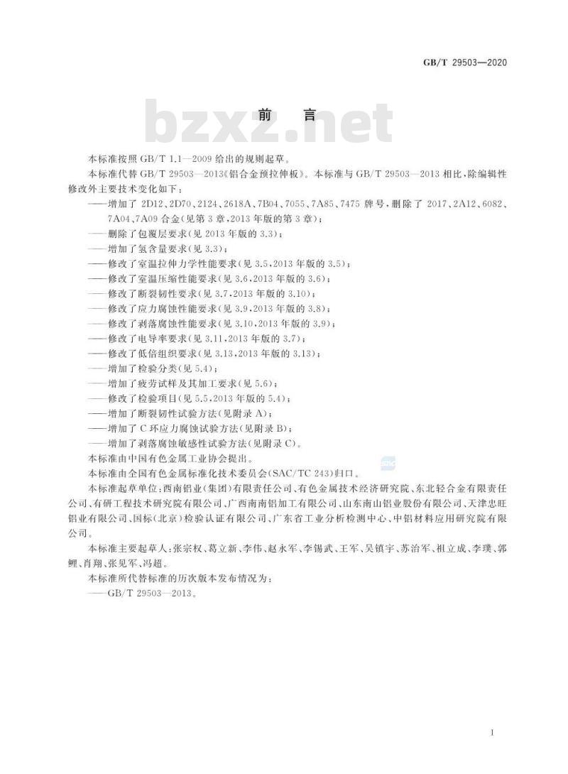 本标准代替GB/T295032013《铝合金预拉伸板》。本标准与GB/T29503—2013相比.除编辑性修改外主要技术变化如下: