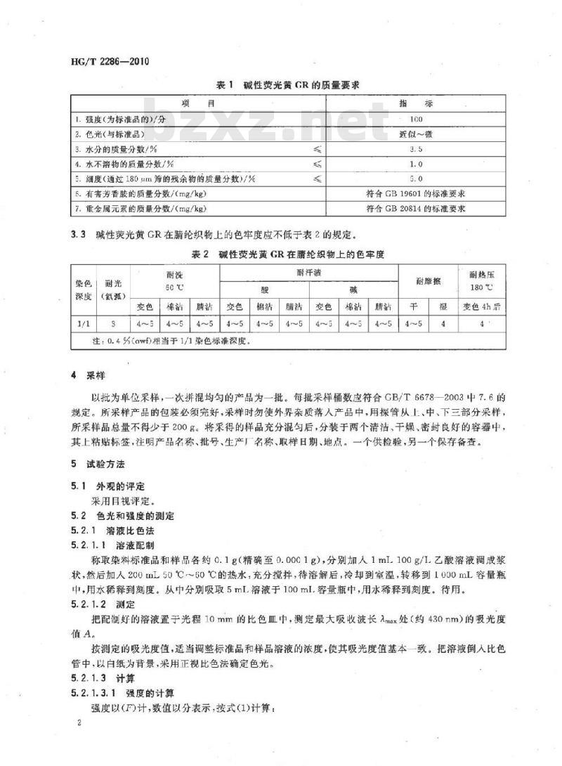 3.2碱性荧光黄GR的质量要求应符合表1的规定。HG/T2286—2010