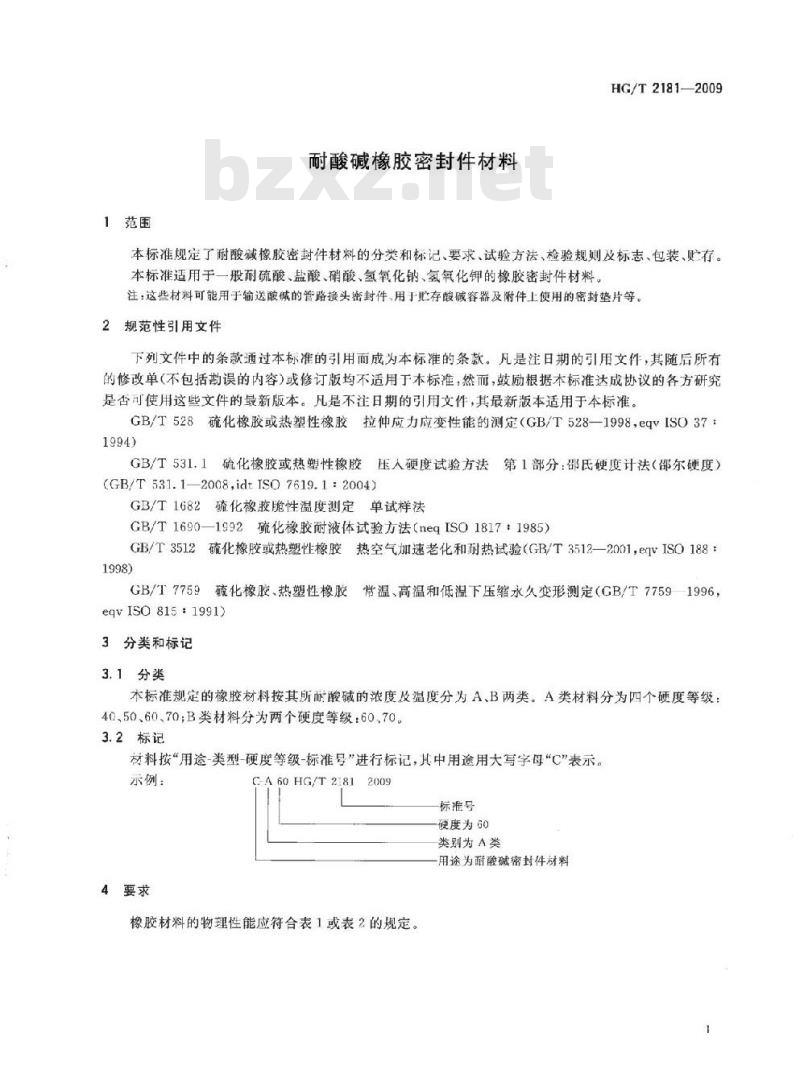 - HG/T 2181-2009 代替 HG/T 2181-1991 耐酸碱橡胶密封件材料