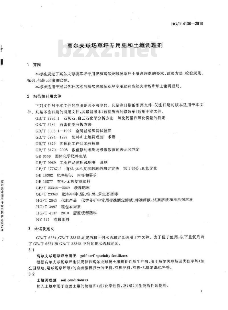 HG/T 4136适用于冠以各种名称的高尔夫球场草坪专用肥和高尔夫球场草坪土壤调理剂。