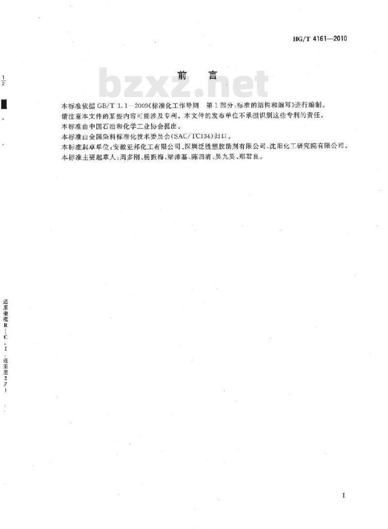 第1部分标准的结构和编写》进行编制。本标准依据GB/T1.1—2009《标准化工作导则请注意本文件的某些内容可能涉及专利。本文件的发布单位不承担识别这些专利的责任。本标准由中国石油和化学工业协会提出。本标准由全国染料标准化技术委员会(SAC/TC134)归口。本标准起草单位:安徽亚邦化工有限公司、深圳泛胜塑胶助剂有限公司、沈阳化工研究院有限公司。本标准主要起草人:周多刚、杨振梅、梁沛基、陈四清、吴九英、郑君良。KAoNiKAca