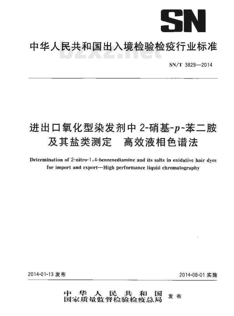 - SN/T 3829-2014 进出口氧化型染发剂中2-硝基-p-苯二胺及其盐类测定高效液相色谱法