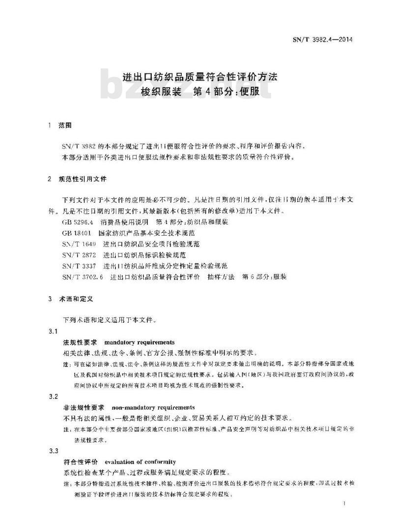 SN/T 3982.4适用于各类进出口便服法规性要求和非法规性要求的质量符合性评价。