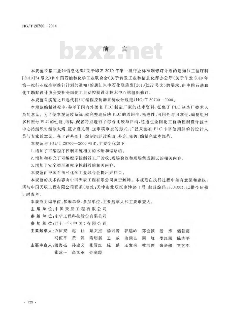 - HG/T 20700-2014 可编程序控制器系统工程设计规范