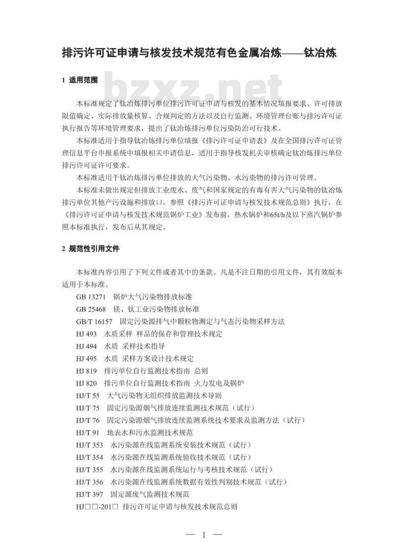 本标准适用于钛冶炼排污单位排放的大气污染物、水污染物的排污许可管理。本标准未做出规定但排放工业废水、废气和国家规定的有毒有害大气污染物的钛冶炼排污单位其他产污设施和排放口,参照《排污许可证申请与核发技术规范总则》执行,在《排污许可证申请与核发技术规范锅炉工业》发布前,热水锅炉和65t/h及以下蒸汽锅炉参照本标准执行,发布后从其规定。2规范性引用文件
