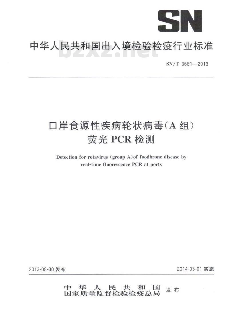 - SN/T 3661-2013 口岸食源性疾病轮状病毒(A组)荧光PCR检测