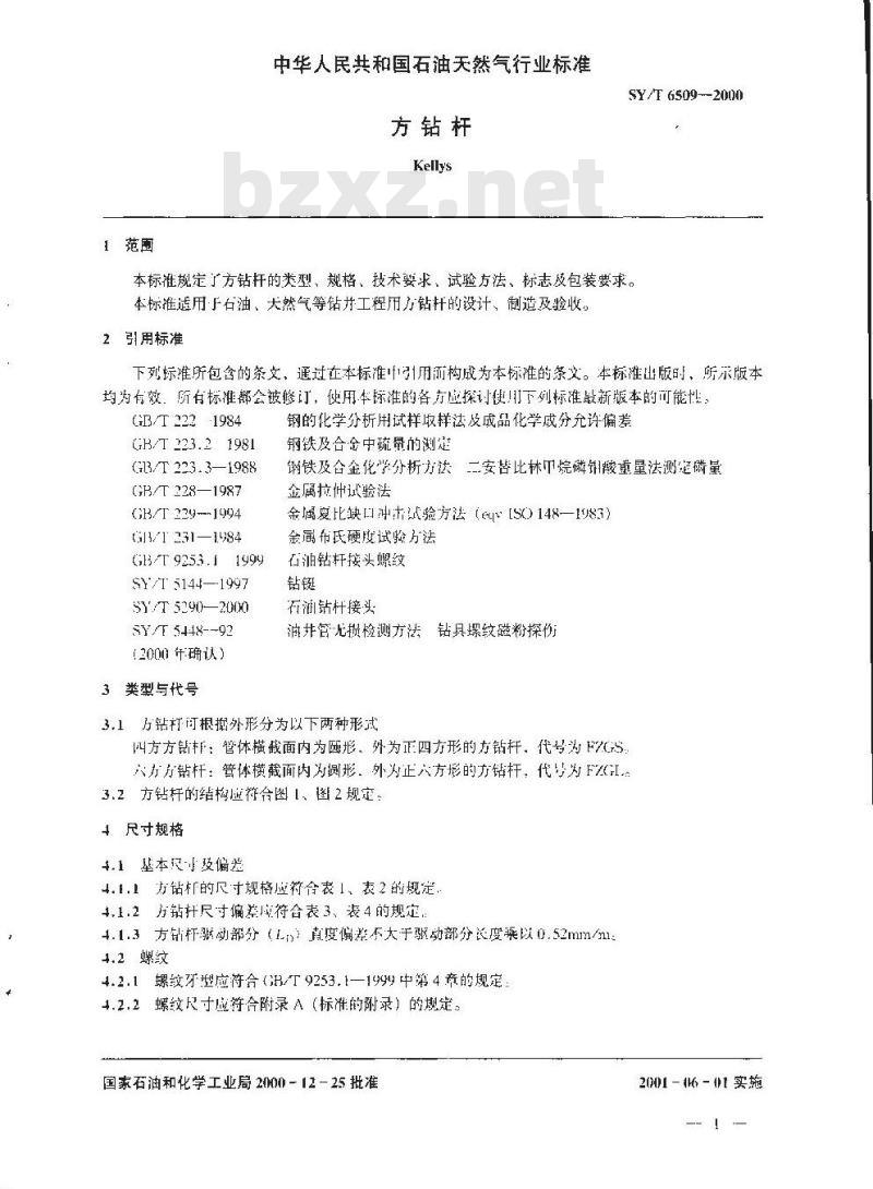 本标准规定了方钻杆的类型、规格、技术要求、试验方法、标志及包装要求。本标准适用于右油、大然气等钻井工程用方钻杆的设计、制造及验收。2引用标准