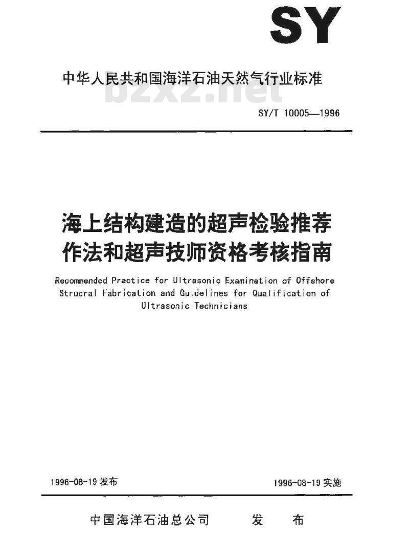 - SY/T 10005-1996 海上结构建造的超声检验推荐作法和超声技师资格的考试指南