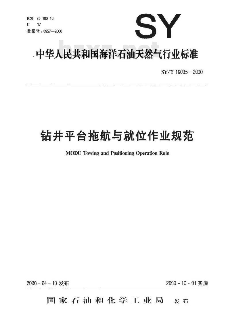- SY/T 10035-2000 钻井平台拖航与就位作业规范