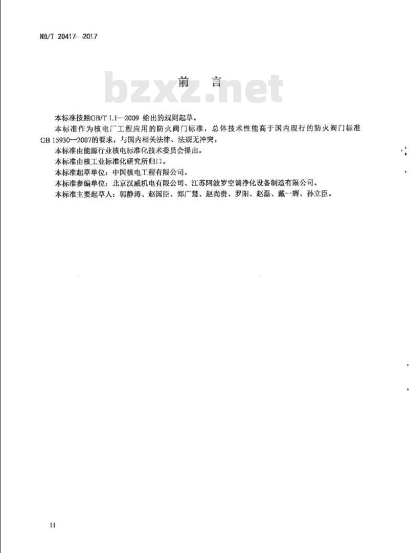 本标准按照GB/T1.1-2009绘出的规则起草。本标准作为核电厂工程应用的防火阀门标准,总体技术性能高于国内现行的防火阀门标准GB15930—2007的要求,与国内相关法律、法规无冲突。本标准由能源行业核电标准化技术委员会提出。本标准由核工业标准化研究所归口。本标准起草单位:中国核电工程有限公司。本标准参编单位:北京汉威机电有限公司、江苏阿波罗空调净化设备制造有限公司。本标准主要起草人:郭静涛、赵国臣、郑广慧、赵尚贵、罗阳、赵磊、戴一辉、孙立臣。II