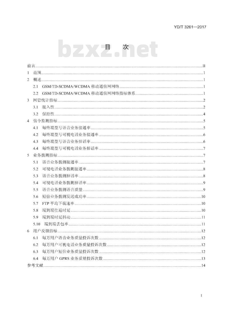 YDB128—2013GSM/EDGE(GERAN)网络运行管理指标TD-SCDMA/WCDMA无线接入网网络运行管理指标TD-SCDMA/WCDMA高速下行分组接入(HSDPA)网络运行管理指标TD-SCDMA/WCDMA高速上行分组接入(HSUPA)HSUPA网络运行管理指标GSM与TD-SCDMA/WCDMA移动通信网融合核心网网络运行管理指标GSM/TD-SCDMA/WCDMA移动通信网业务质量指标(本标准)本标准依据GB/T1.1一2009的规则起草。请注意本文件的某些内容可能涉及专利。本文件的发布机构不承担识别这些专利的责任。本标准由中国通信标准化协会提出并归口。本标准起草单位:中国移动通信集团公司、中国移动通信集团设计院有限公司、中国联合网络通信集团有限公司、北京邮电大学、中兴通讯股份有限公司。本标准主要起草人:李健。