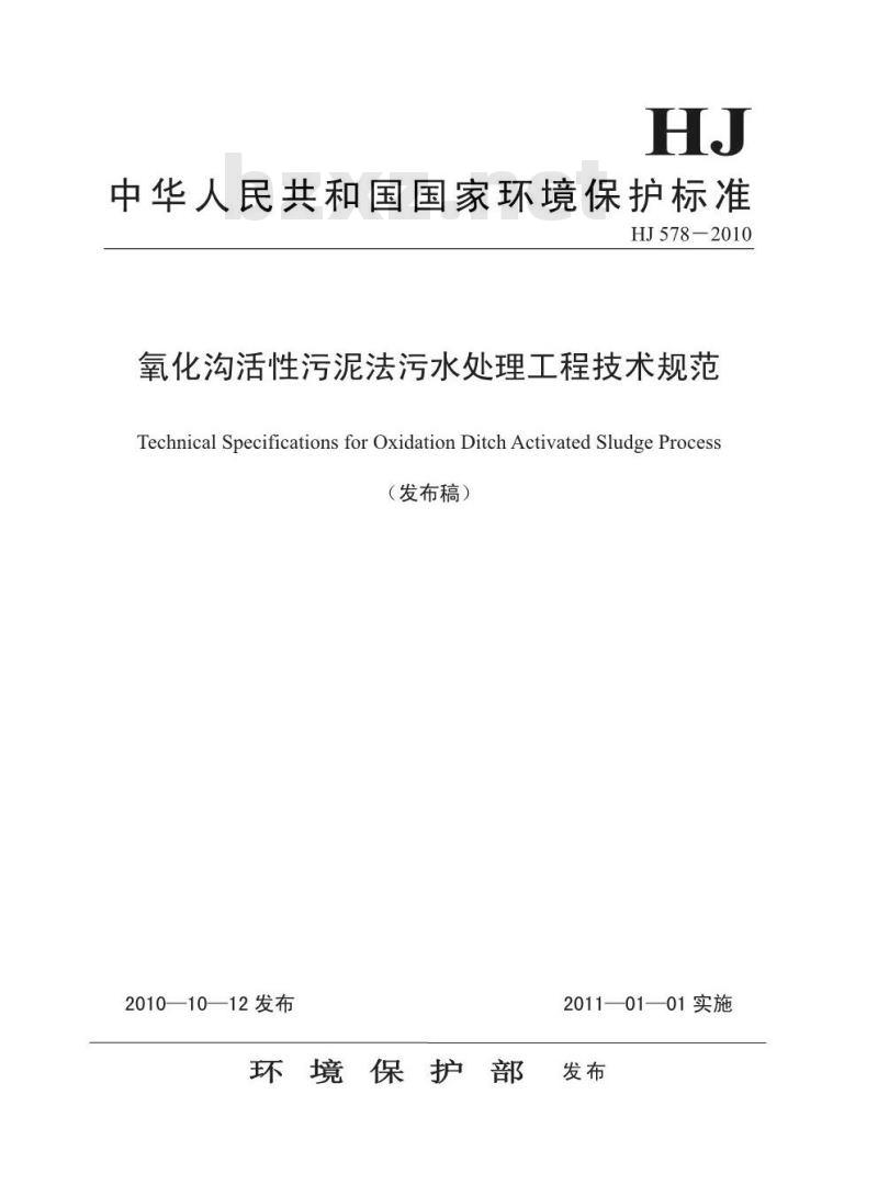 - HJ 578-2010 氧化沟活性污泥法污水处理工程技术规范