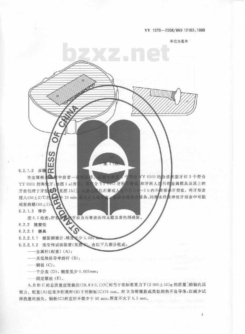 按6.2.2试验,蜡的流变性应符合表1的规定。YY1070—2008/IS012163:1999