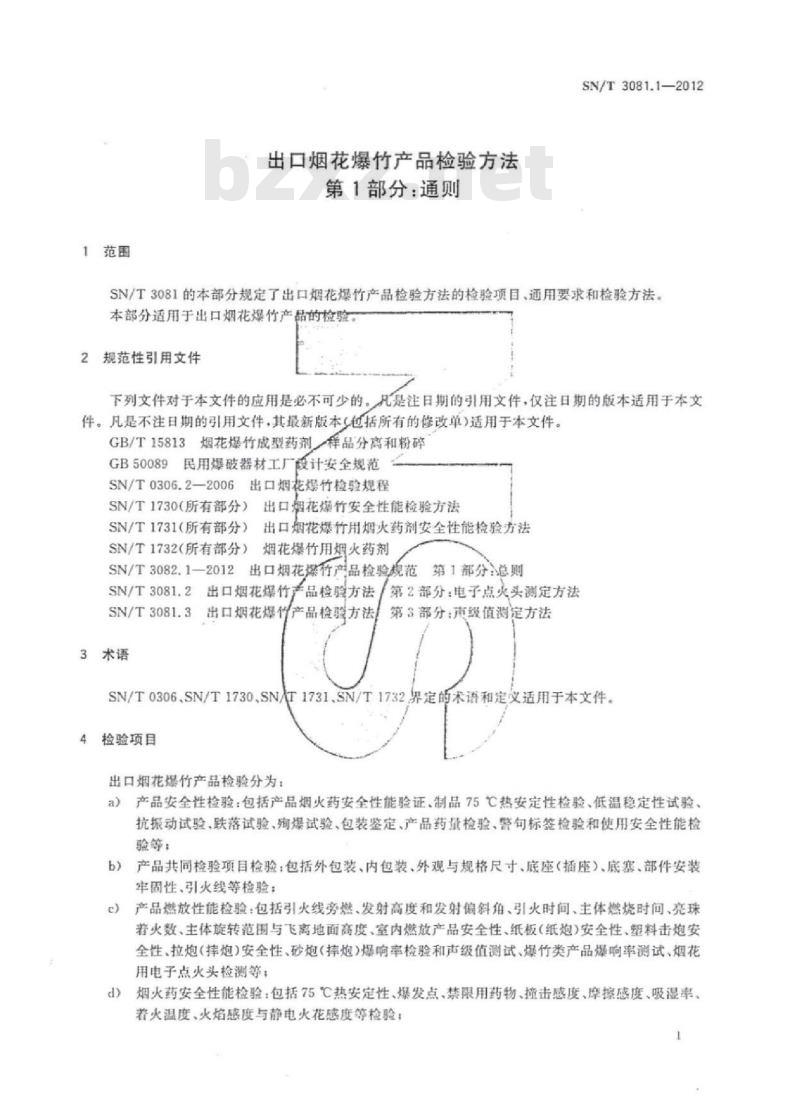 - SN/T 3081.1-2012 出口烟花爆竹产品检验方法第1部分:通则