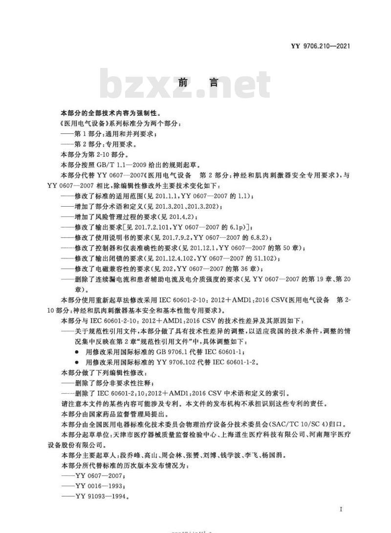YY 9706.210-2021代替YY 0607-2007.Medical electrical equipment-Part 2-10: Particular requirements for the basic safety and essential performance of nerve and muscle stimulators.
