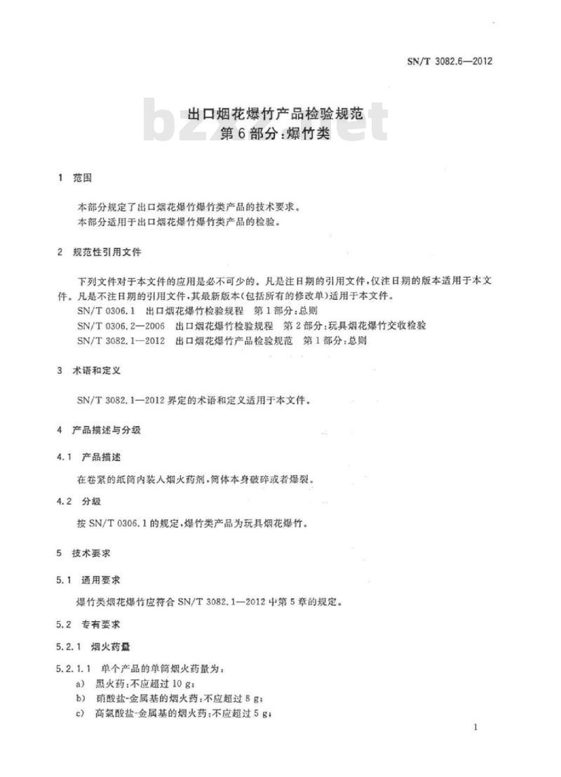 - SN/T 3082.6-2012 出口烟花爆竹产品检验规范第6部分:爆竹类