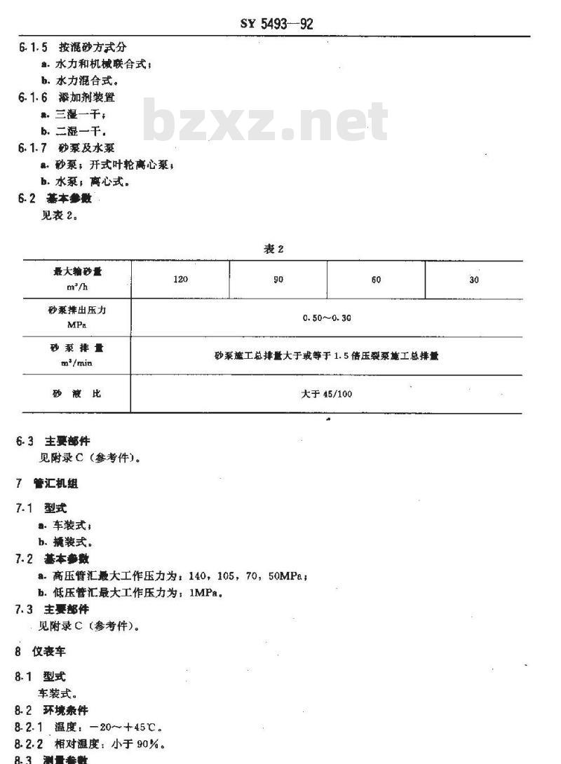 - SY 5493-1992 压裂成套设备型式与基本参数