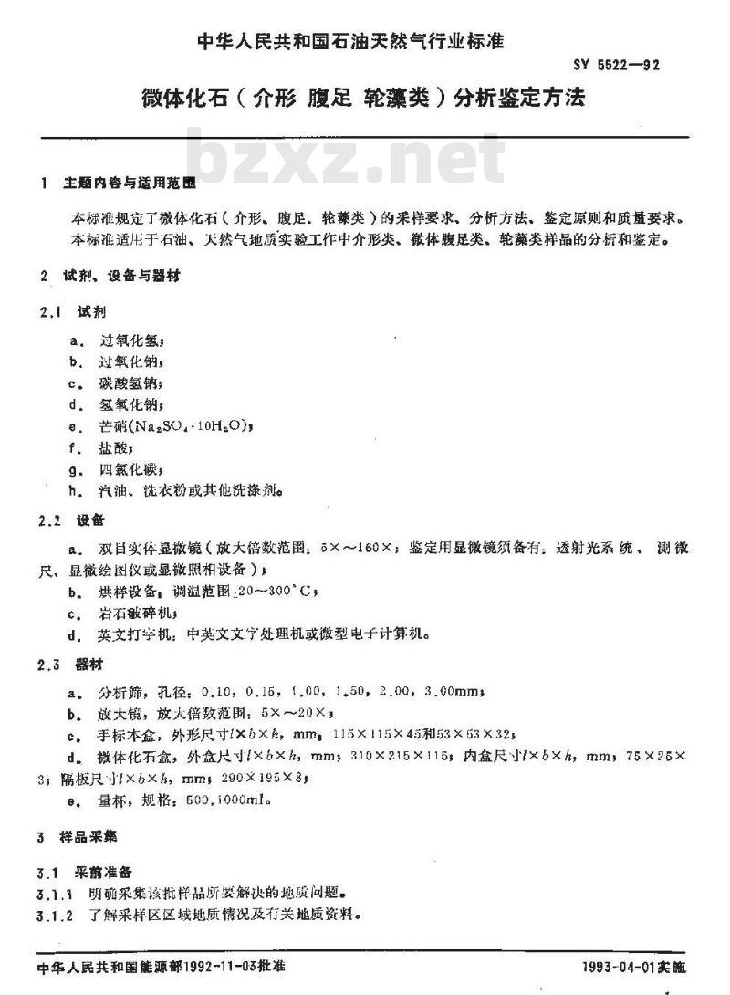 - SY 5522-1992 微体化石(介形 腹足 轮藻类)分析鉴定方法