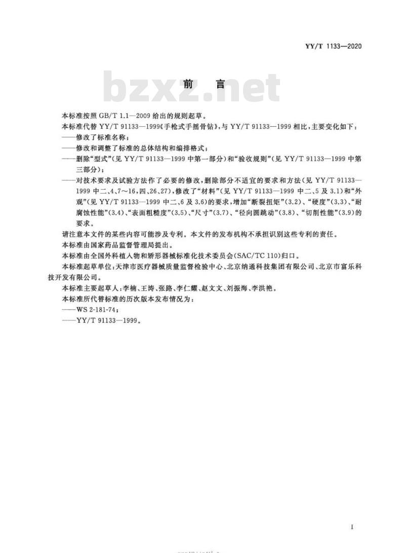 本标准代替YY/T91133—1999《手枪式手摇骨钻》,与YY/T91133—1999相比,主要变化如下修改了标准名称;