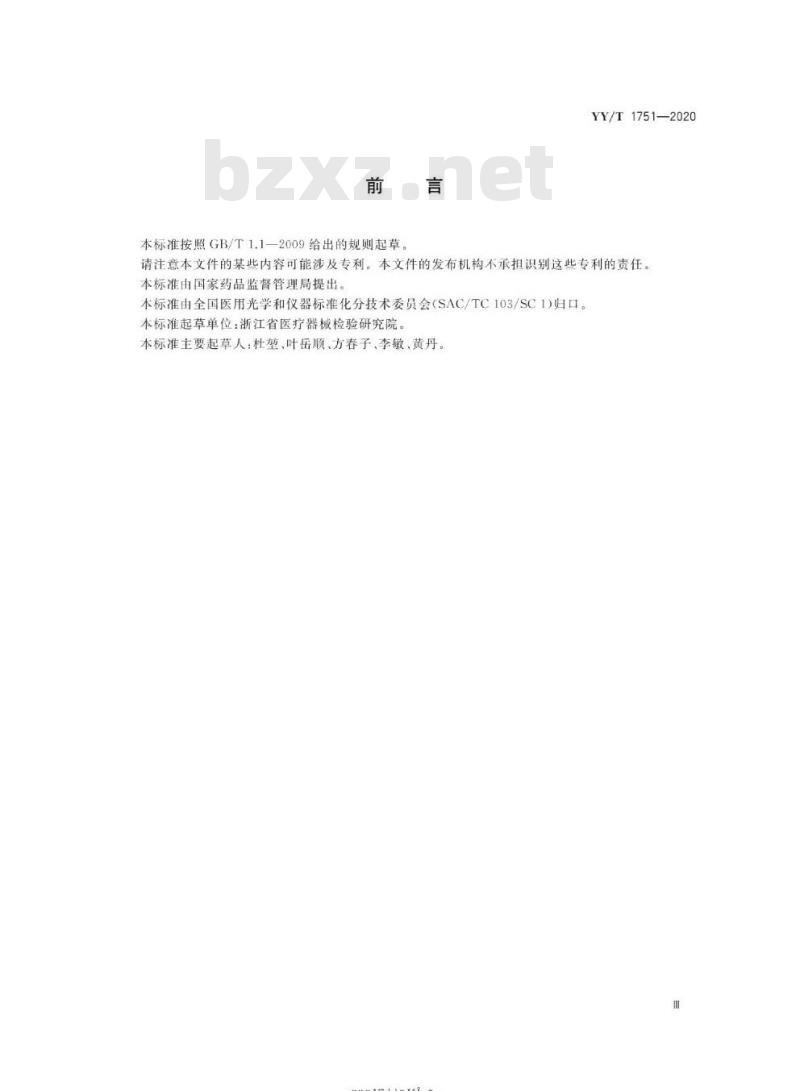 请注意本文件的某些内容可能涉及专利。本文件的发布机构不承担识别这些专利的责任。本标准由国家药品监督管理局提出。本标准由全国医用光学和仪器标准化分技术委员会(SAC/TC103/SC1)归口。本标准起草单位:浙江省医疗器械检验研究院。本标准主要起草人:杜垫、叶岳顺、方春子、李敏、黄丹。-riKaeerkca-