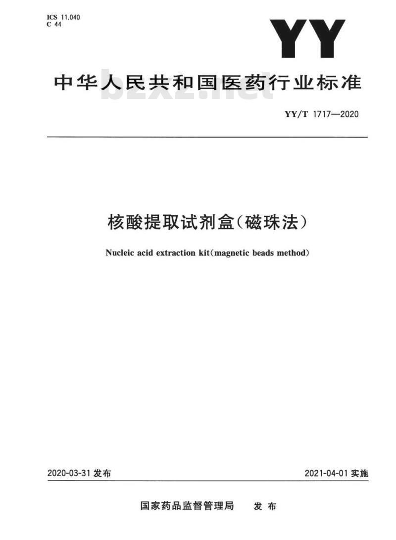 - YY/T 1717-2020 核酸提取试剂盒(磁珠法)