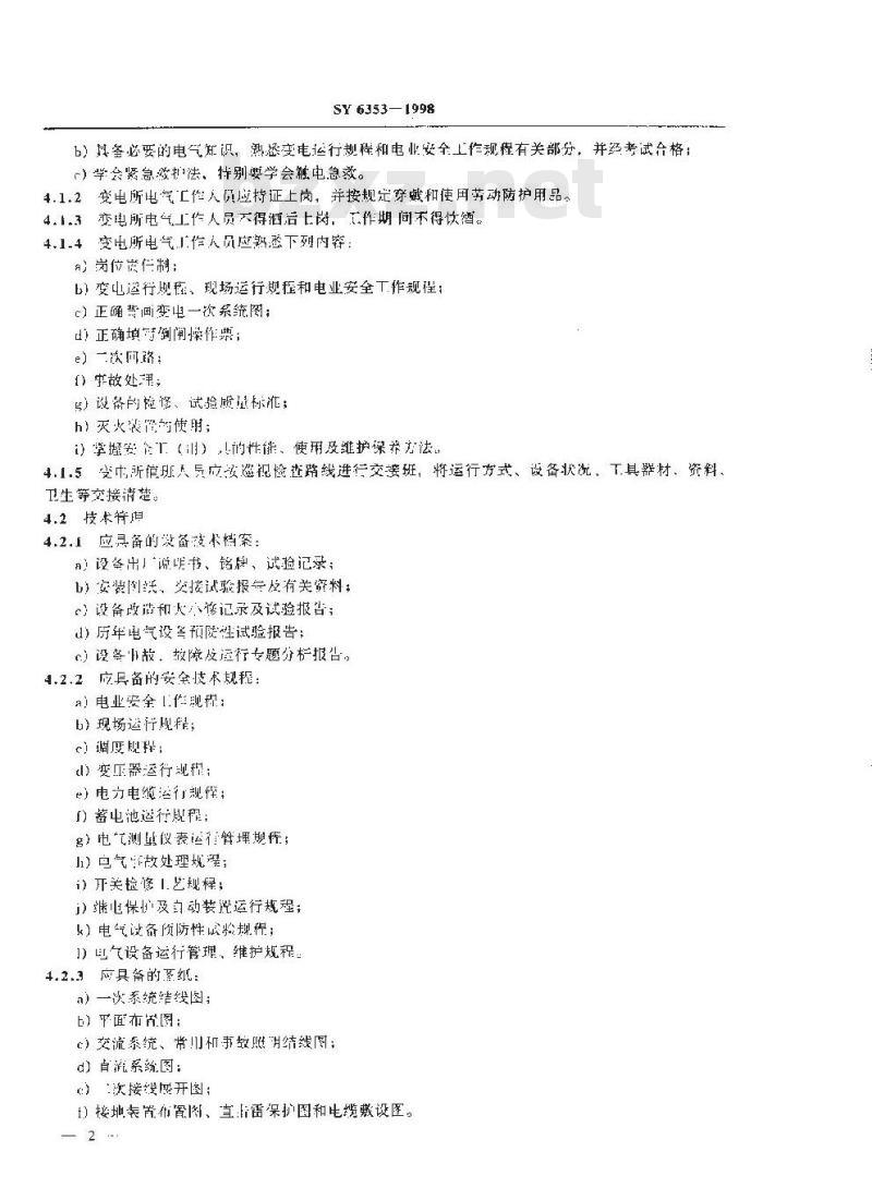 4.1.1变电所电气工作人员应具条下列条件:引)经医师鉴定,妨得工作的病症;中国石油天然气总公司1998-06-23批准1998 11-01实施