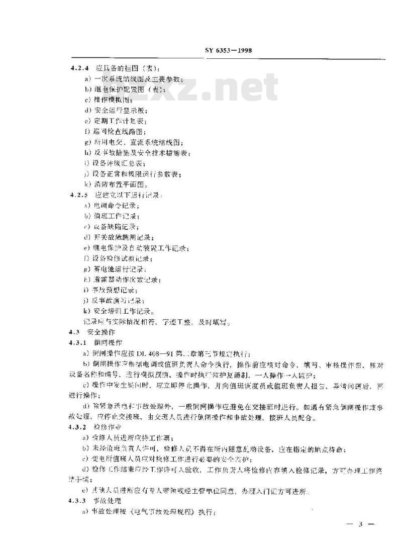 让)州故处理接《电气有故处现规程》执行;SY 6353—1998