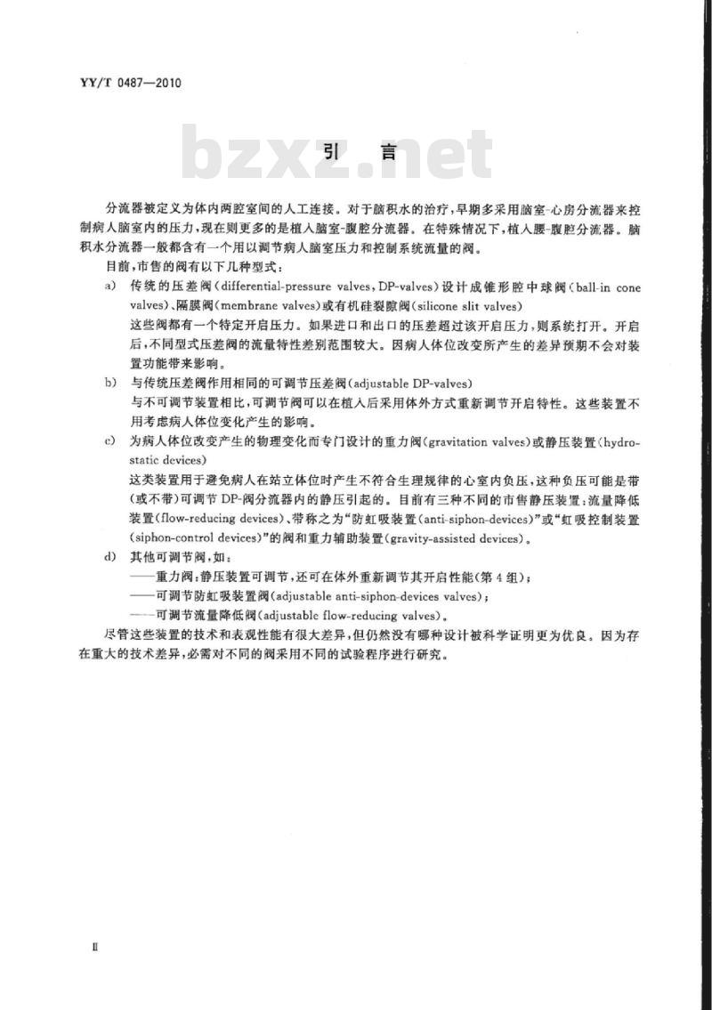 YY/T 0487规定了一次性使用无菌脑积水分囂器及其组件的安全性和性能要求。包括分比器质用的组件.如阌管路和储被器。