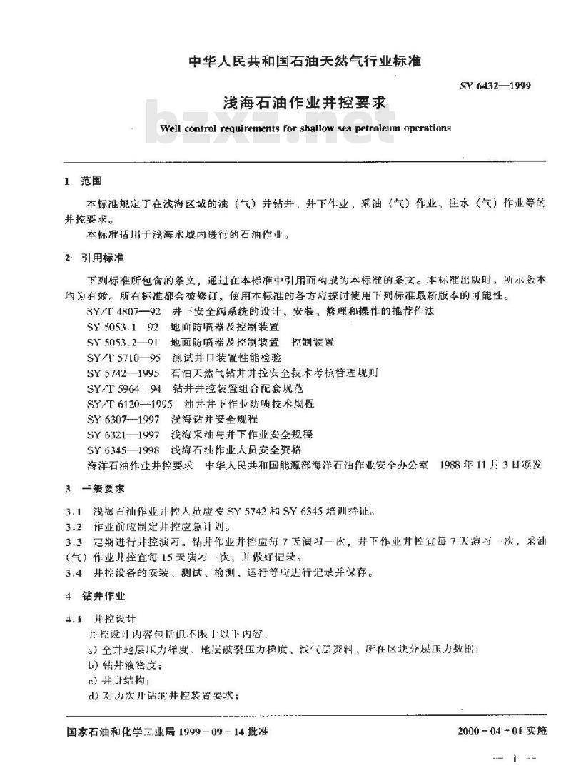 中华人民共和国石油天然气行业标准浅海石油作业井控要求