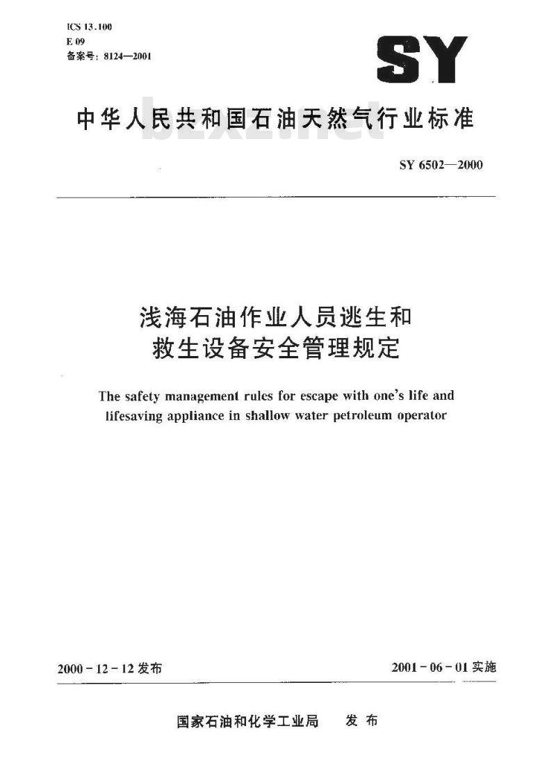 - SY 6502-2000 浅海石油作业人员逃生和救生设备安全管理规定