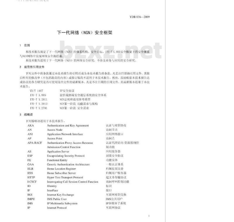 - YDB 036-2009 下一代网络(NGN)安全框架