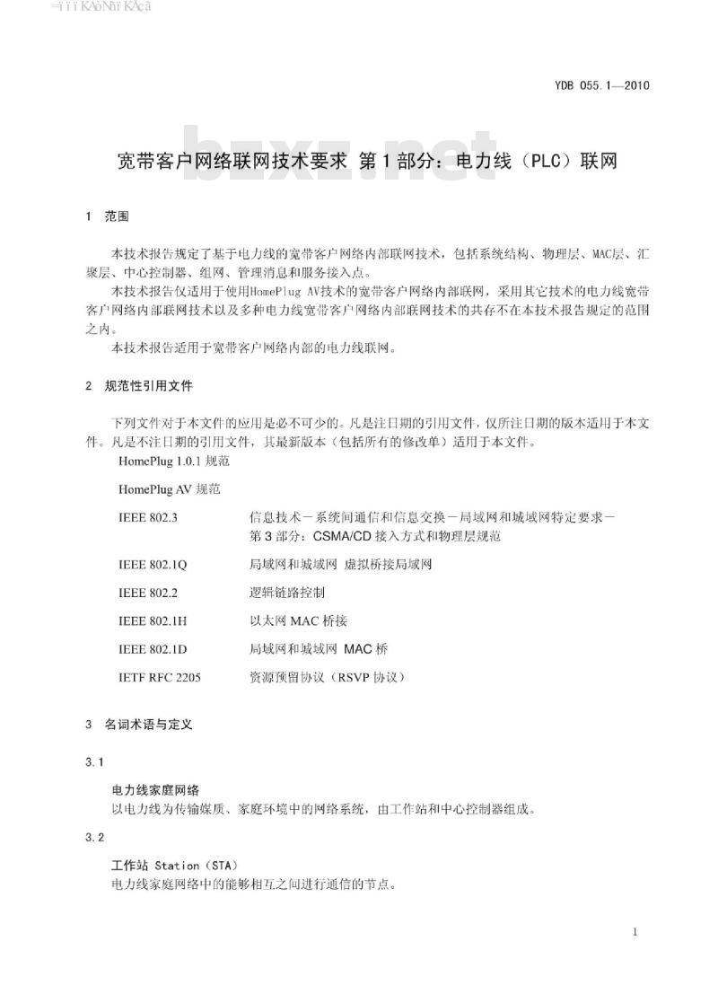 - YDB 055.1-2010 宽带客户网络联网技术要求 第1部分:电力线(PLC)联网