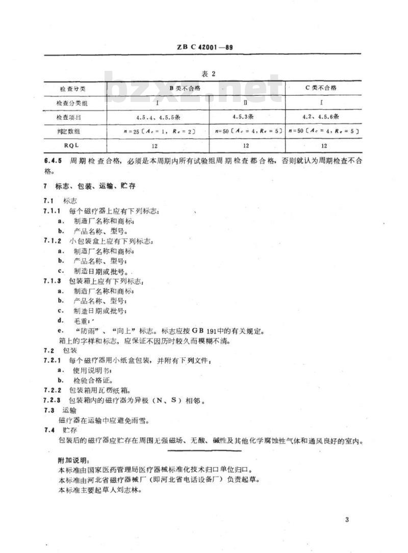 本标准由国家医药管理局医疗器械标准化技术归口单位归口。本标准由河北省磁疗器械厂(即河北省电话设备厂)负责起草。本标准主要起草人刘志林。
