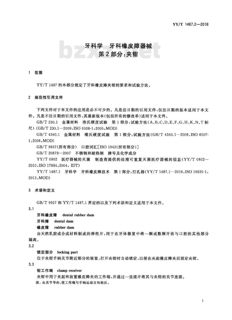 YY/T 1487的本部分规定了牙科橡皮障夹钳的要求和试验方法。