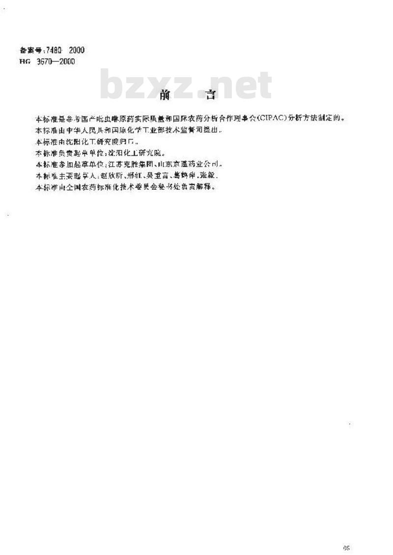 本标准量参考国产吡虫琳原药实际所量和国际农药分析合作列丰令(CIPAC)分析方法制定的。本标准出中毕人民共和国原化学工业部技术监督司提出:本标准由就阳化工研究院归厂..本标准负责起单单位,滤阳化工研究院。本标准参加起草单位,江苏克胜莱团、山东京遵药业公。牛标准主要起草人:越欣所、邢红、重言、善料伴.张额。本标滞出全国农药标准化批术季员会整为姓资声解挥。5