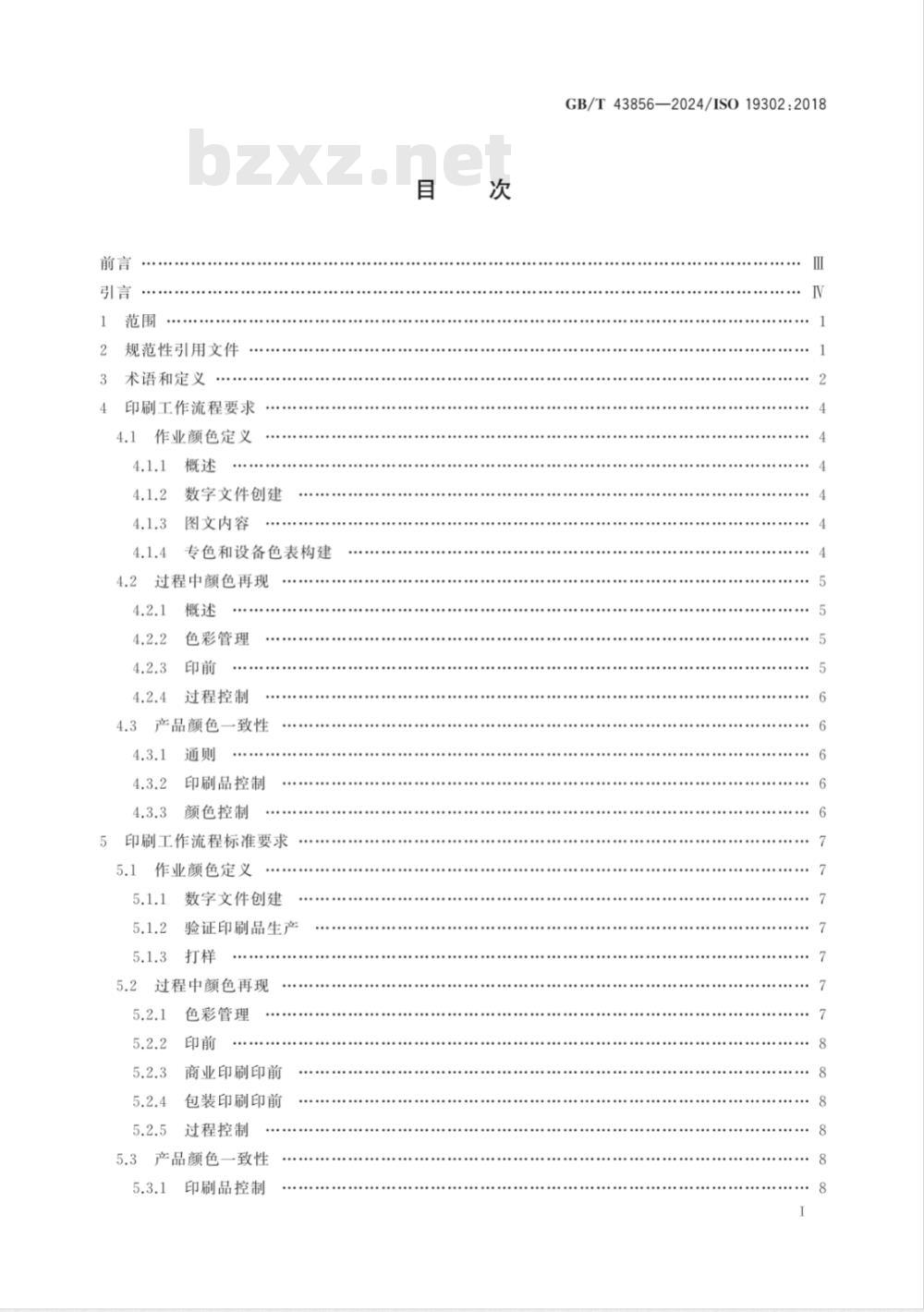 GB/T43856—2024/ISO19302:2018印刷技术印刷工作流程的颜色一致性本文件规定了印刷工作流程的要求,并描述了阶调和颜色再现的评价方法。本文件适用于任何整体或部分的印刷工作流程中使用任何着色剂的任意印刷过程的定义、评价和审核,如CMYK、CMYK十专色、非CMYK、仅有专色或多色印刷。规范性引用文件